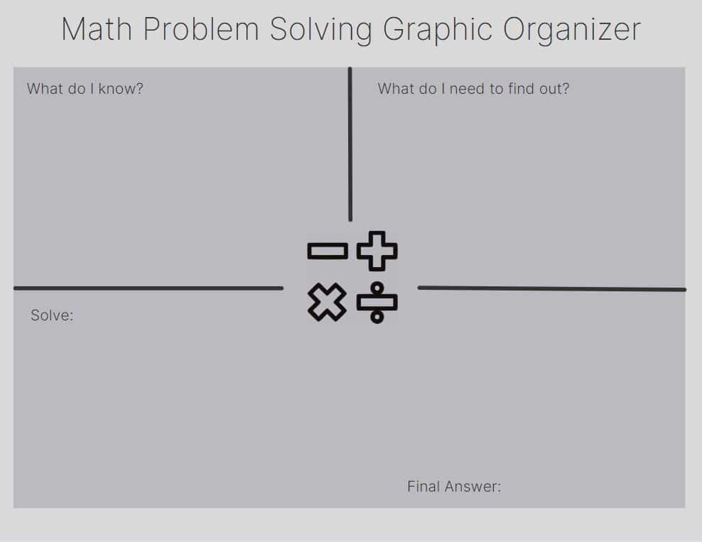 In an Entry level lesson covering this standard, a teacher may introduce the idea of problem solving using a video that describes the steps to problem solving. This YouTube video from Miacademy is a good example of a video that can be used at a variety of age levels. After the class finishes watching the video, the teacher may lead the class through a sample word problem using a graphic organizer like this one to help students organize their work.
