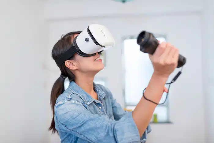 MR mixes VR and AR, putting virtual stuff into the real world. It lets users interact with both worlds at the same time. MR is fantastic for training simulations, architectural visualization, and working together in virtual spaces.
