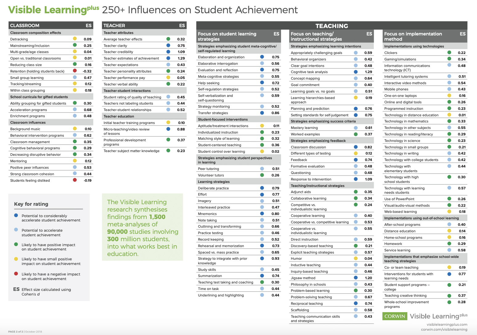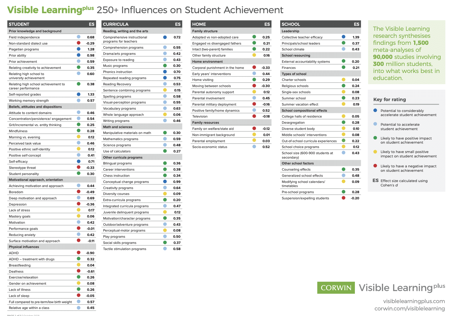 (Information from Corwin Visible Learning MetaX)